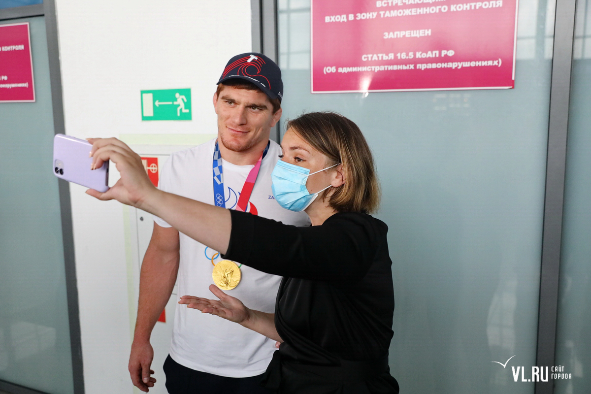 Сборная России по греко-римской борьбе вернулась после выступления на Олимпиаде, рейс сделал посадку во Владивостоке, и борцы вышли на полчаса, чтобы пообщаться с болельщиками